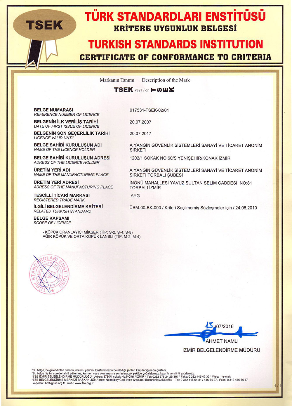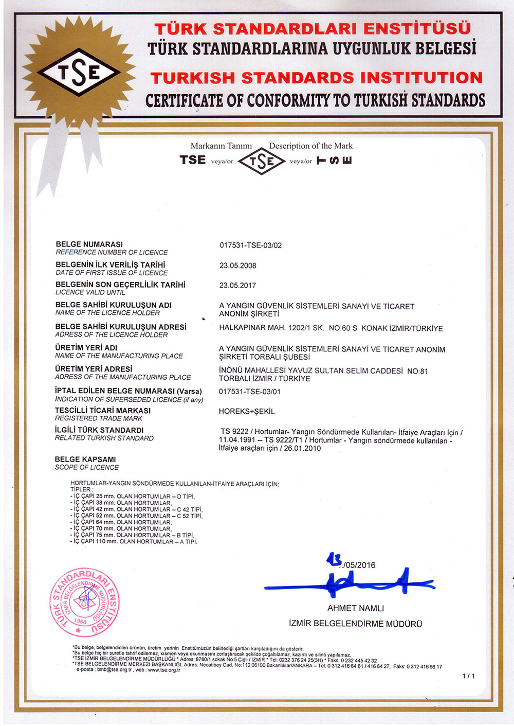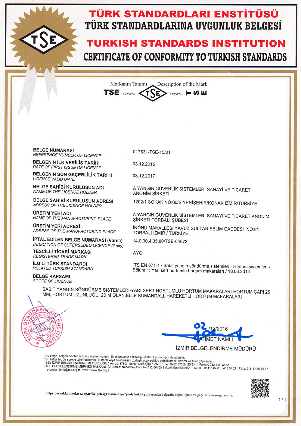CE EN 671-1_2012 Sabit Yangın Söndürme Sistemleri 2