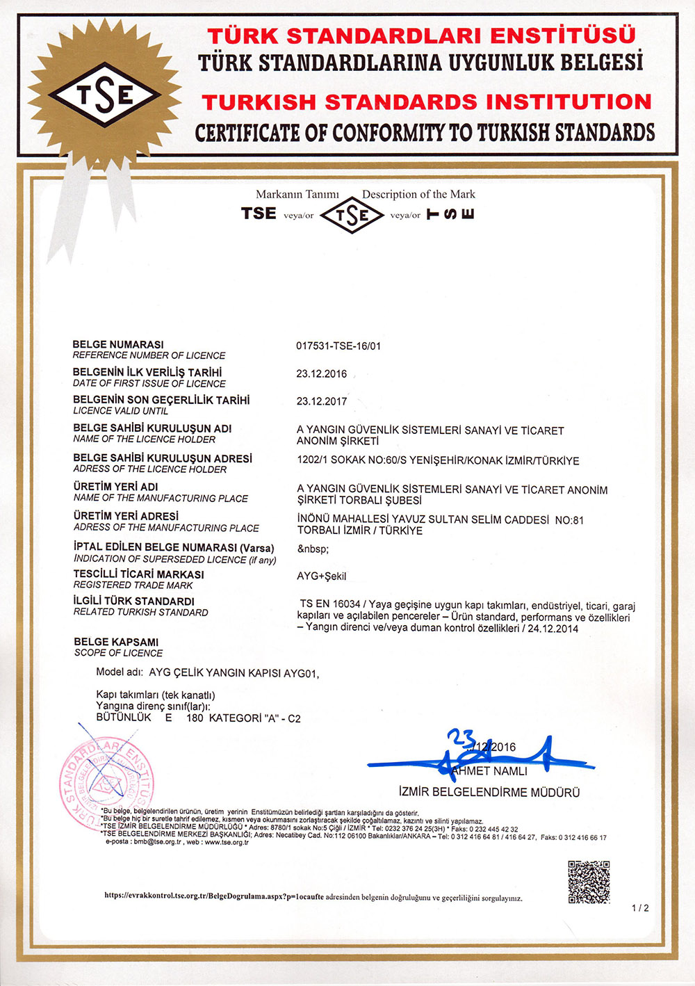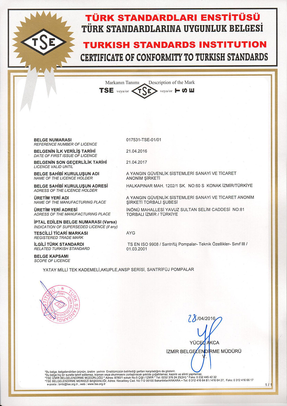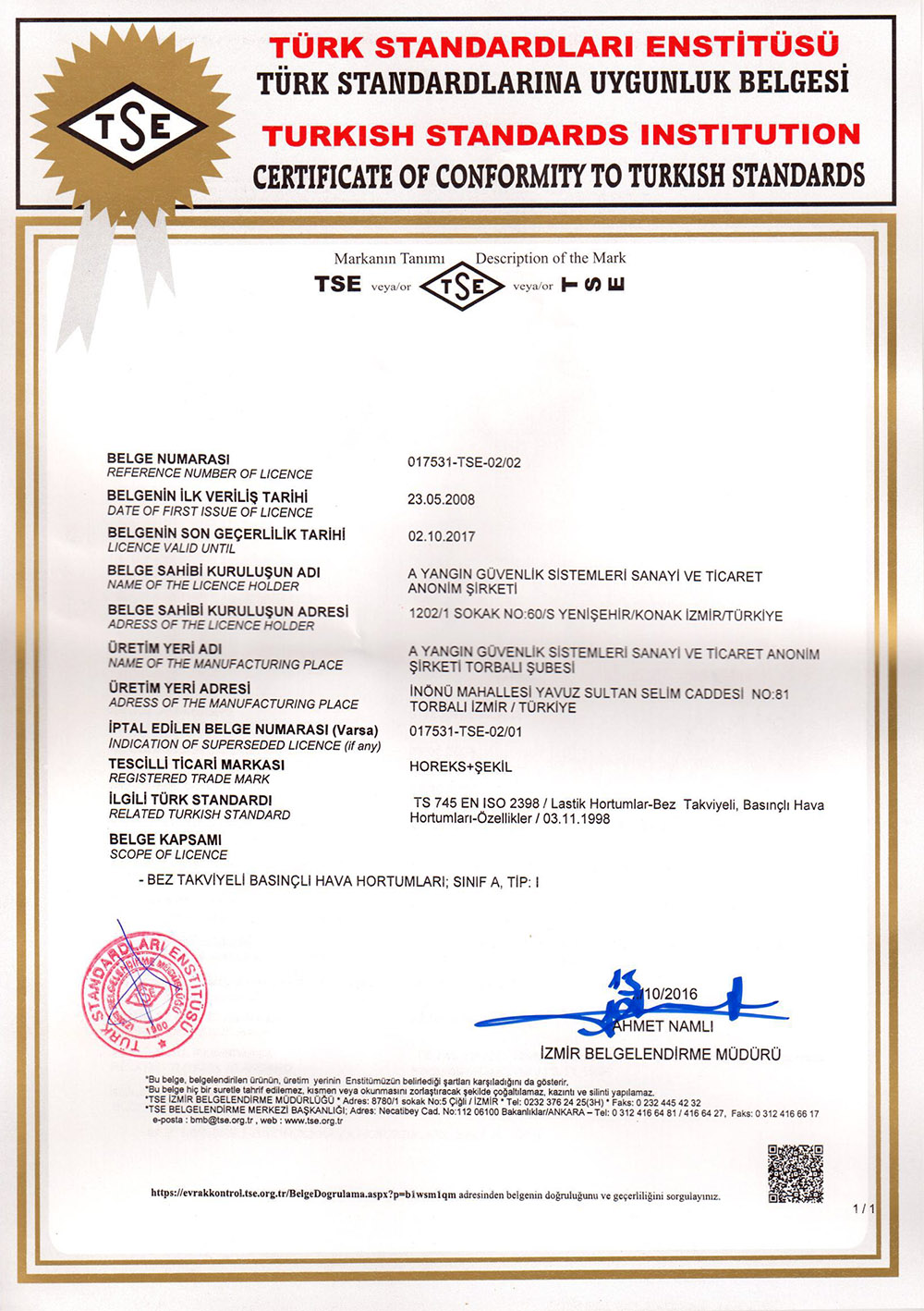 CE EN 671-1_2012 Sabit Yangın Söndürme Sistemleri 2